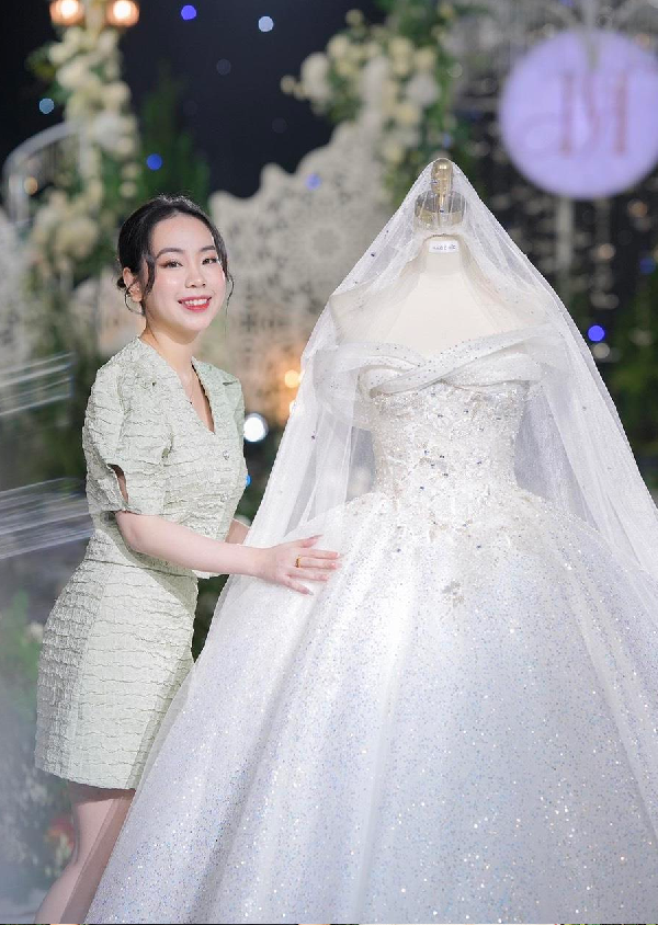 Đám cưới lung linh của Kim Ngân và Gia Hưng diễn ra trang hoàng, lộng lẫy với tổng chi phí lên đến hàng tỷ đồng, sự hoành tráng chỉn chu toàn diện mang tầm vóc đúng chất của một sự kiện quan trọng. Chiếc váy cưới được đính toàn bộ là đá Swarovski lấp lánh trên nền chất liệu ren nhập khẩu càng khiến cô dâu trở nên đặc biệt hơn.
