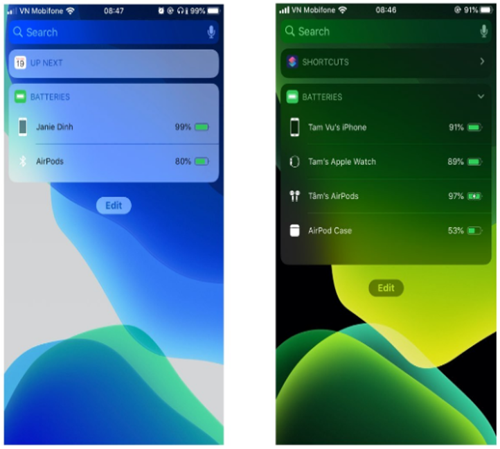 So sánh cách hiển thị pin giữa AirPods thật và nhái