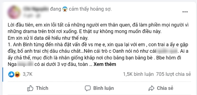 Ngay lập tức, C.N – người được cho là “bạn gái cũ của Shark Bình” đã lên tiếng làm rõ mọi chuyện khi vô tình tham gia vào “drama trên trời rơi xuống”. Mở đầu bài viết, cô gửi lời xin lỗi tới tất cả người quen thân vì đã làm phiền mọi người. Cô thật sự không mong muốn điều này và xin xử lý chuyện một cách dễ hiểu.