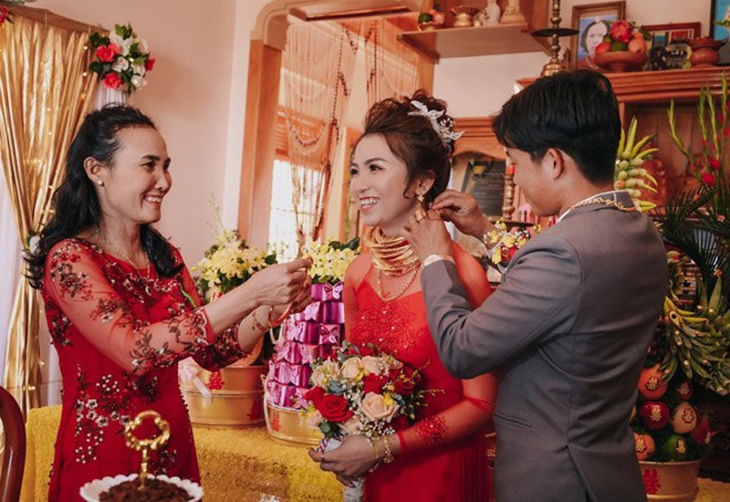 Khi ấy cô dâu tâm sự rằng, hai gia đình chỉ trồng nông sản nhưng thuộc diện khá giả trong vùng. Vì thế bố mẹ hai bên đã dành tất cả điều tốt đẹp nhất cho hai đứa.