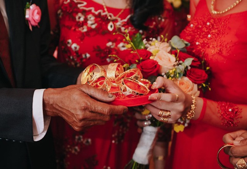 Cách đây 3 năm, mạng xã hội từng xôn xao về hình ảnh về một cô dâu đeo vàng trĩu cổ – kín tay trong ngày trọng đại của cuộc đời gây xôn xao. Cụ thể, cô dâu đeo gần 15 chiếc kiềng, dây chuyền vàng trên cổ; hai tay mang nhiều nhẫn nhỏ và 10 lắc vàng bản to… Ngoài ra, cô gái này còn được bố mẹ trao tặng 2 sổ đỏ cùng chìa khóa ôto… Có lẽ vì thế, cô dâu xinh đẹp này luôn rạng rỡ, hạnh phúc suốt buổi lễ vu quy.