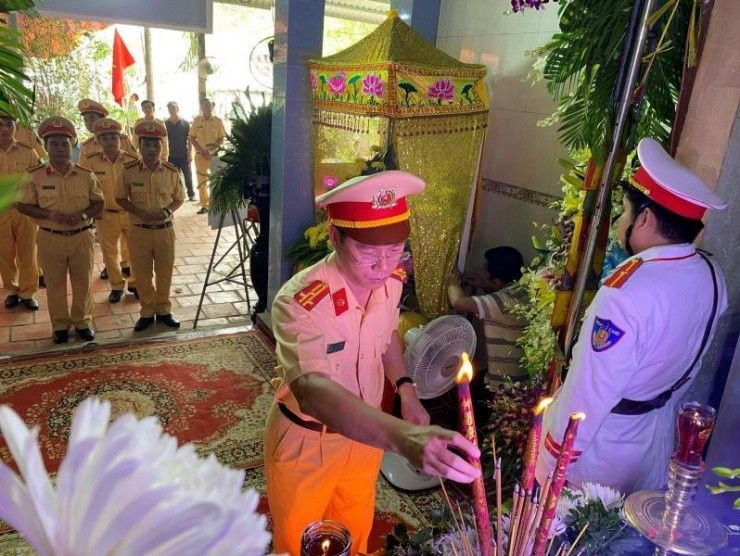 Đoàn công tác thuộc Cục CSGT-Bộ Công an chia buồn cùng người thân Thiếu tá Nguyễn Xuân Hào.