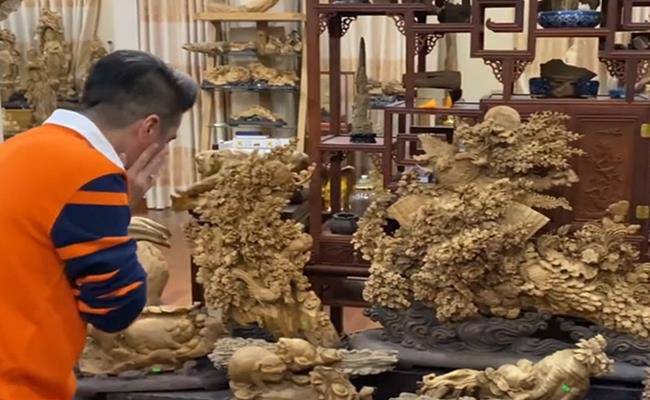 Hoài Linh cũng khẳng định rằng toàn bộ các sản phẩm trong căn phòng đều là trầm hương. “Trầm hương hết đó em, có cả kỳ nam nữa. Những cái này người ta chạm trổ, làm hết xong mới gửi cho mình”, Hoài Linh chia sẻ với Đàm Vĩnh Hưng.