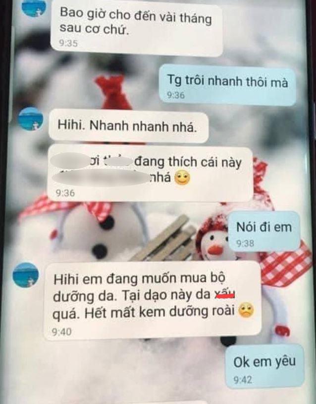 Kèm theo đó là loạt tin nhắn đò đưa giữa cô gái với chồng của bạn thân. Cả hai bắt đầu nhắn tin qua lại, thể thiện tình cảm yêu đương từ cuối năm 2018 đến giờ. Cô gái liên tục muốn nhân tình mua cho mình cái này cái kia, đặc biệt muốn được chia sẻ cùng vì cuộc sống quá nhiều bộn bề. Đặc biệt cô ta còn dặn dò chồng của bạn thân cần phải cẩn thận, không cô bạn thân hay ai quen cả hai biết là khổ. Cô ta có dự cảm không lành.