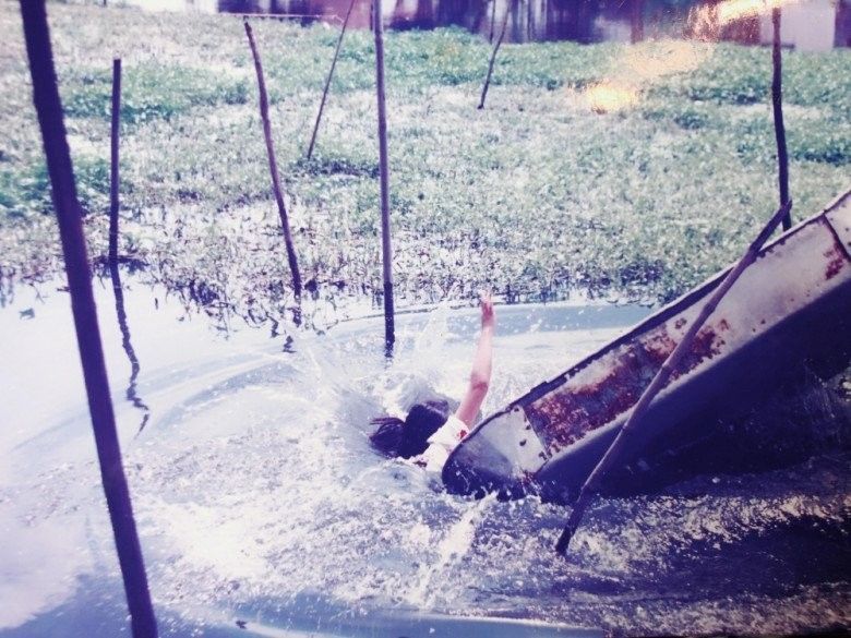 Khu đó ngày xưa rất nghèo, hai bên bờ toàn nhà tạm của người dân, nhà xập xệ đến nỗi đi nhẹ nó cũng rung rinh. Rác thải sinh hoạt rồi vệ sinh các kiểu là họ thải trực tiếp xuống con kênh đó luôn, nói chung là rất bẩn và hôi thối. Nhiều phân đoạn tôi phải diễn cảnh mò trùng chỉ, phải lặn xuống kênh, tôi sợ xanh mặt nhưng vẫn phải cố tỏ ra bình thản cho tròn vai. Giờ nghĩ lại không hiểu sao mình có thể làm được như vậy (cười).