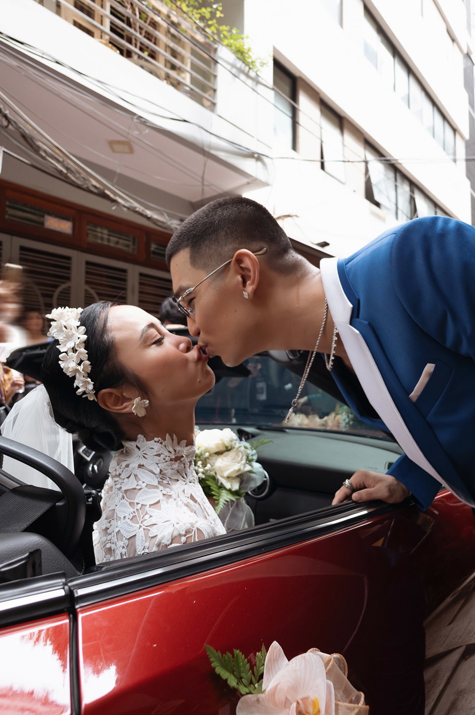 Chiều 28/7, Cường Seven diện vest lịch lãm, lái xe sang Mercedes mui trần sang nhà Vũ Ngọc Anh để rước dâu.