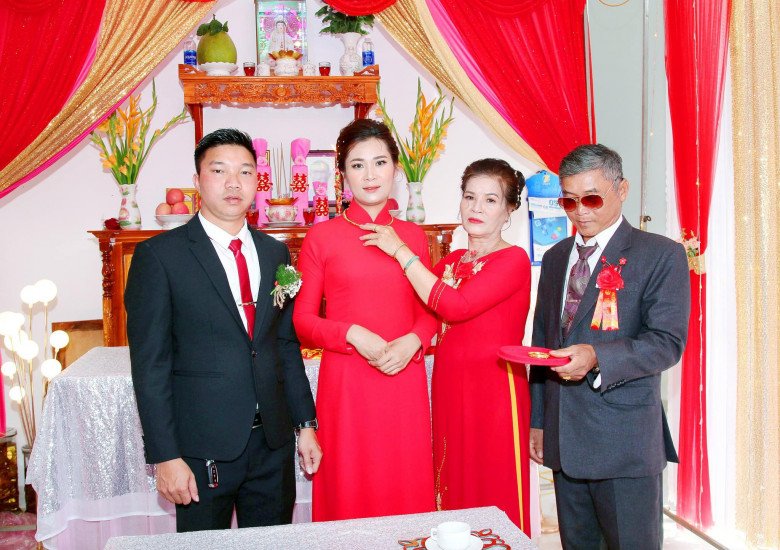 Ngày 17/10, đám cưới của chị Hạnh và anh Thuật diễn ra tại nhà riêng, có sự chứng kiến chúc phúc của gia đình hai bên và khách mời thân thiết. Cô dâu mặc áo dài màu đỏ rực rỡ cho khoảnh khắc làm lễ gia tiên, chính thức về nhà chồng. Trong tiệc cưới, chị Hạnh thay 2 chiếc váy trắng bồng bềnh để lên sân khấu cùng ông xã và đi từng bàn cảm ơn khách mời đến dự. Nhan sắc ở độ tuổi ngoài 30 của chị Hạnh nhận được nhiều lời khen ngợi khi rất trẻ trung, xinh đẹp và luôn nở nụ cười trên môi.