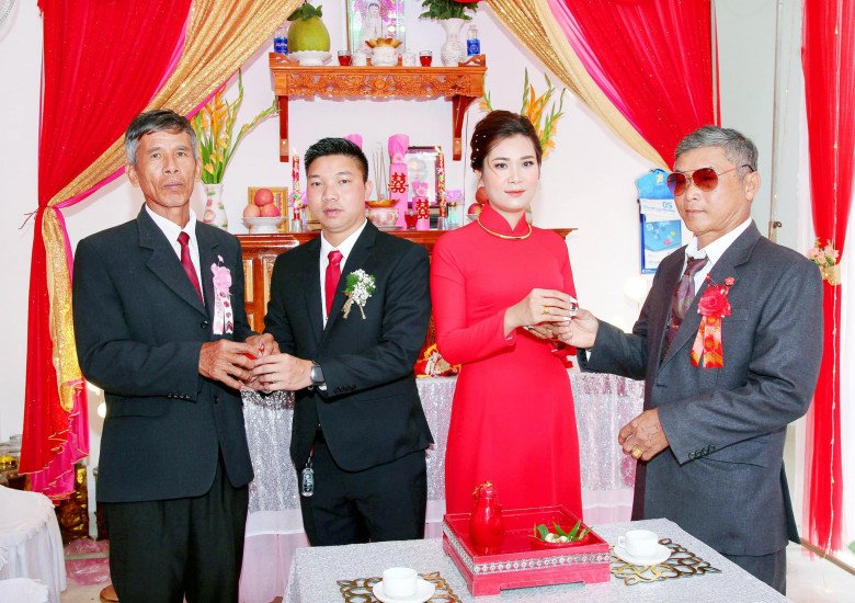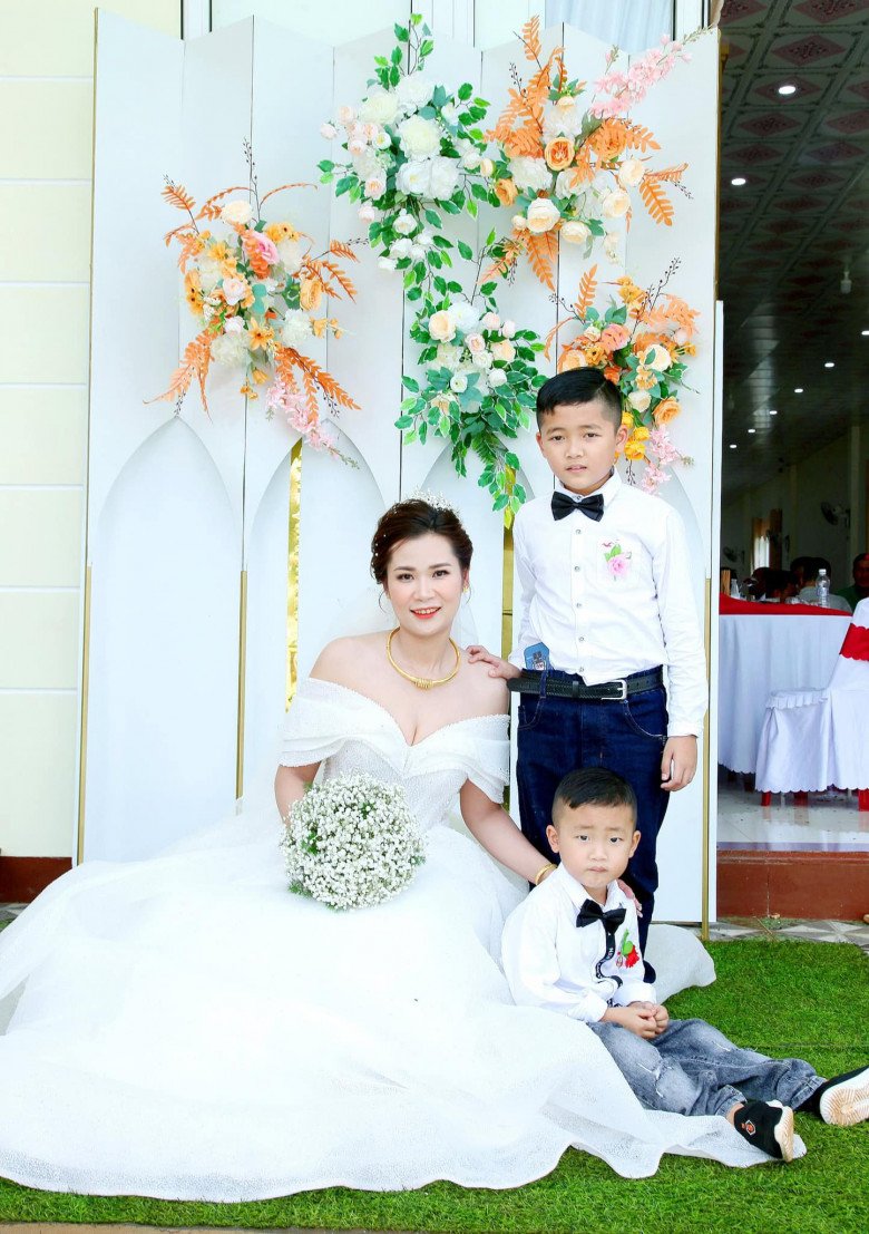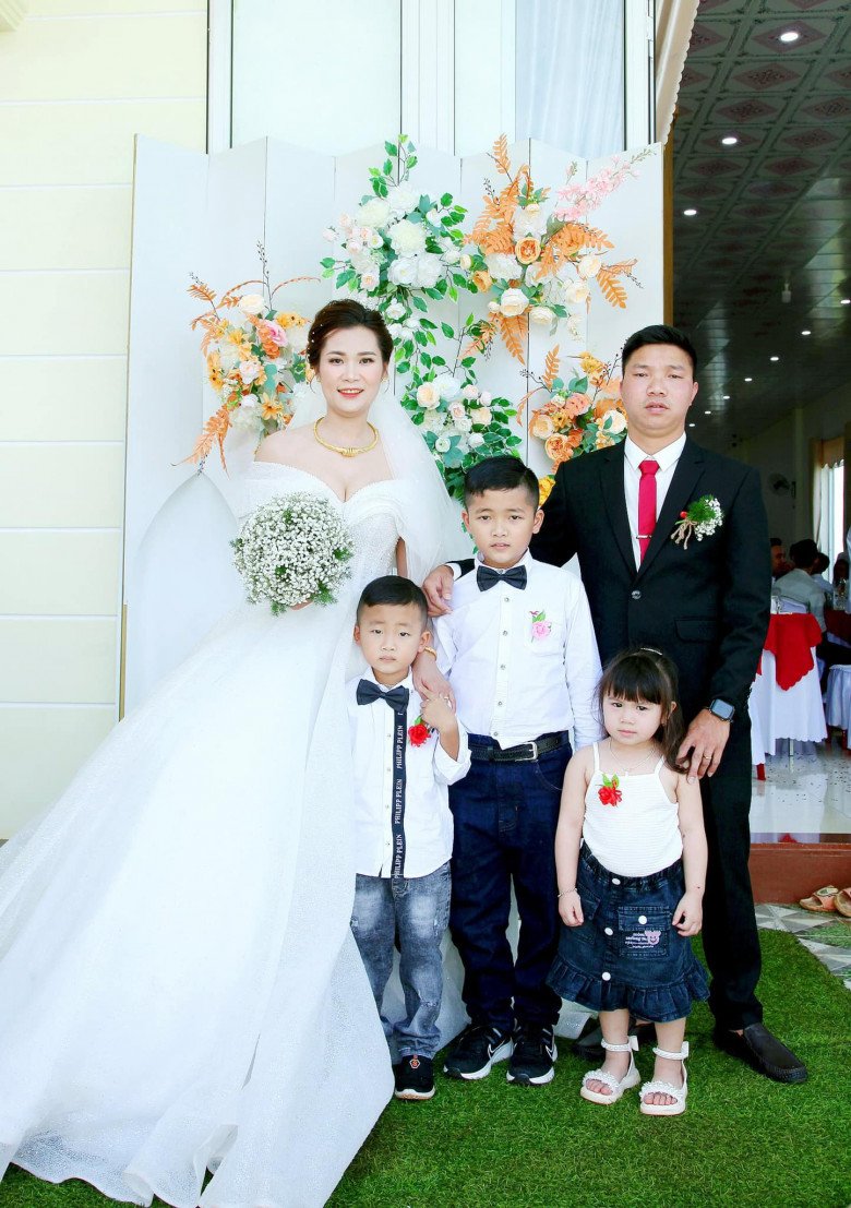 Chị Hạnh cùng các con và anh Thuật trong lễ cưới