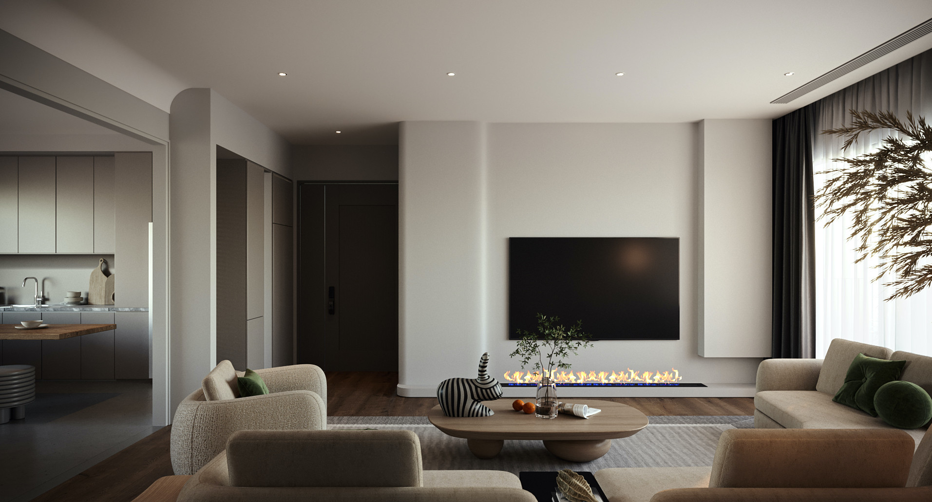 Căn hộ có tông màu kem và ghi chủ đạo mang cảm giác sang trọng, hiện đại. Bất động sản mới của Đình Tú được thiết kế theo phong cách tối giản, với đầy đủ công năng dành cho một người độc thân hiện đại với một phòng ngủ lớn dành cho chủ nhân.
