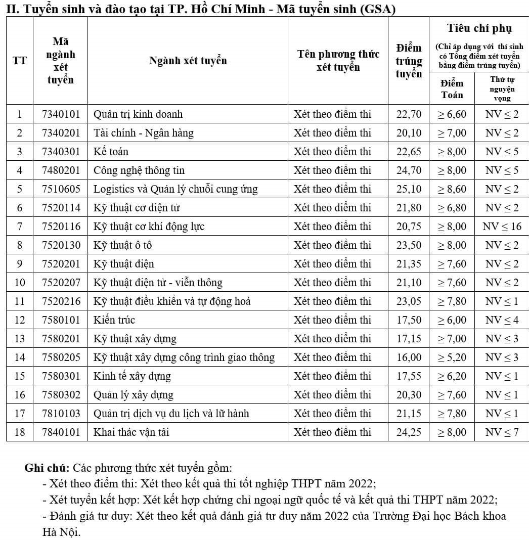 Điểm chuẩn Trường Đại học Giao thông vận tải năm 2022