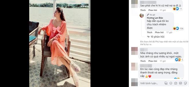 Việc doanh nhân Đào Lan Hương đăng ảnh gợi cảm nhưng vẫn kín đáo khiến nhiều người liên tưởng đến diễn viên Phương Oanh – người đang dính lùm xùm tình cảm với Shark Bình. Từ lúc scandal nổ ra, những hình ảnh cô đăng tải lên trang cá nhân đều theo hướng gợi cảm, quyến rũ, không ngại phô diễn đường cong một cách táo bạo. Sau khi mở lại Facebook, tần suất khoe ảnh của Phương Oanh được cho là còn nhiều hơn trước.