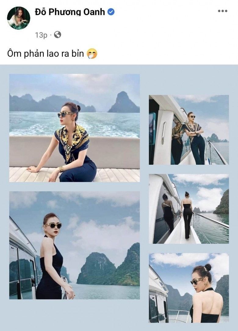 Cụ thể, tối 27/3, Shark Bình đăng tải hình ảnh “khai hè” hóng gió biển trên du thuyền. Nhìn trong ảnh, Shark Bình diện quần áo thoải mái, tạo dáng cầm rượu nhâm nhi ngắm cảnh biển. Cùng khung hình trên thì sáng 28/3, diễn viên Phương Oanh tung loạt ảnh thả dáng nuột nà check-in Vịnh Hạ Long. Diện trang phục màu đen đơn giản, Phương Oanh tạo điểm nhấn bằng khăn cổ, trang sức và mắt kính “tông xuyệt tông”. Người đẹp càng thêm nổi bật với làn da trắng sáng, 3 vòng cực chuẩn không mỡ thừa.