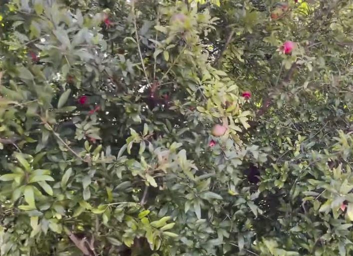 Một góc khác trong vườn có đào, lựu dù trái mùa vẫn sai trĩu. Sát bờ tường còn có bụi mía. Táo, ổi trồng rải rác nhưng trĩu cành. Hà Thanh Xuân chia sẻ cô rất thích ăn táo vì hương vị ngon ngọt, còn rất bổ dưỡng. Đi sâu vào khu vườn còn nhiều loại cây khác như bơ, roi, bưởi, hồng giòn…