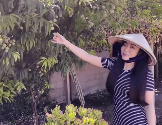 Điều khiến nữ ca sĩ tự hào là khu vườn không thiếu những cây ăn trái như ổi, nhãn, cam, khế, táo, cóc, mận… Bố của cô trồng các loại cây này từ ngày đầu về ngôi nhà để cảm thấy ấm lòng, vơi bớt nỗi nhớ quê hương.