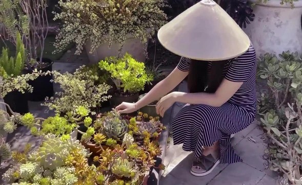 Trong khu vườn trồng rất nhiều cây cối. Đa số các cây đều được Hà Thanh Xuân mua về trồng từ khi còn nhỏ. Lúc mới cải tạo vườn, Hà Thanh Xuân chọn trồng sen đá vì cây sống khỏe, dễ chăm sóc.