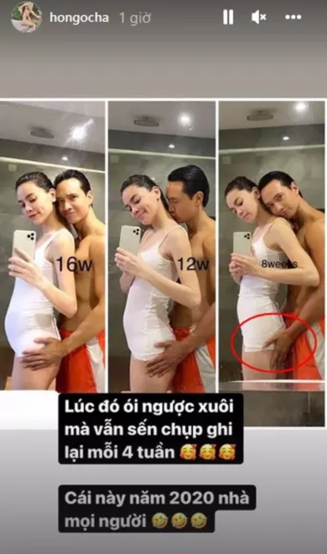 Còn nhớ lúc Hồ Ngọc Hà mang bầu, 2 vợ chồng đã có loạt ảnh selfie trong phòng tắm, và “bàn tay hư” của Kim Lý liên tục đặt lên vòng 3 của mỹ nhân 8X từng trở thành tâm điểm. Nam diễn viên cũng không ngần ngại trao cho vợ nụ hôn ngọt ngào, lãng mạn từ phía sau khi sắp được “lên chức” bố. Một lần khác, khi cặp đôi thực hiện bộ ảnh tạp chí cực sang, Kim Lý cũng để tay lên vòng 1 “khủng” của Hồ Ngọc Hà.