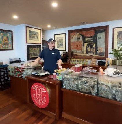 Khu vực quầy thuốc Nam của mẹ Long Chun.