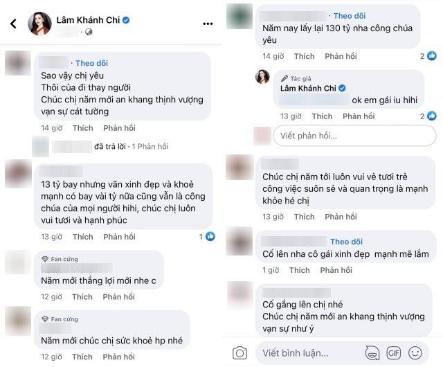 Rất nhiều bình luận động viên Lâm Khánh Chi năm mới thành công và thuận lợi hơn.