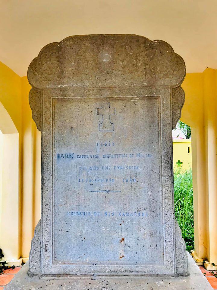 Ở khu lăng Hoàng gia còn có một nhà bia, bên dưới là tấm bia bằng đá trắng Quảng Nam đã hao mòn theo tháng năm nhưng phía trên có hình cây thánh giá màu đen ghi “Đây là nơi an nghỉ của Trung úy Barbé”.