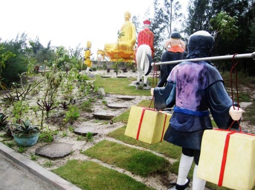 Trong khuôn viên khu lăng mộ, ông Sỹ cho dựng hoạt cảnh thầy trò Đường Tam Tạng trên đường đi thỉnh kinh.