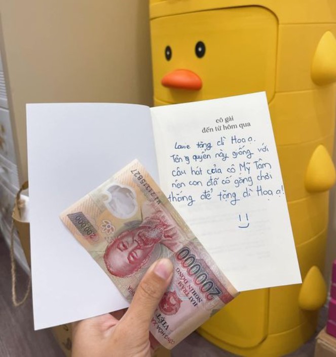 “Mệt mỏi chợt tan biến khi tối nay mình nhận được món quà này từ bạn Lavie nhà mình, cố gắng chơi thắng trò chơi chỉ vì muốn dành được quyển sách có tên bài hát của idol của mình để mang về làm quà tặng mình và kèm theo 200 nghìn tiền lợi nhuận bán hàng cùng với các bạn cùng lớp, cảm ơn bạn đã thương mình như mình thương bạn”, chị viết.