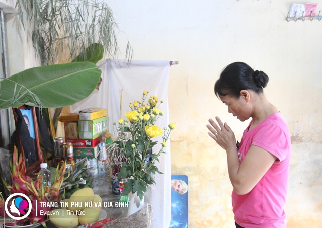 Chị Vừng đau đớn chia sẻ, góc nhà bên kia tấm ảnh cưới vẫn còn đó, mà phía bên này đã là ban thờ của chồng.