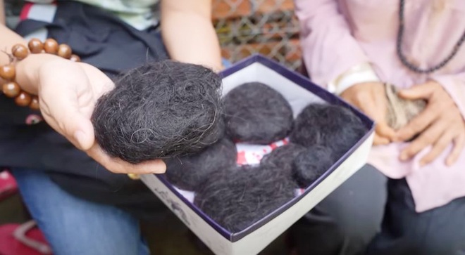 Vài năm trở lại đây, bà càng trở nên nổi tiếng khi những búi tóc rối bỗng dưng cuộn đanh, thành từng miếng tròn vo. Thi thoảng chúng tôi lại rủ nhau vào nhà bà chơi rồi xin được xem số tóc đó”, chị Hiền Thao (35 tuổi) – người bán nước ngay quốc lộ 1A cho hay.