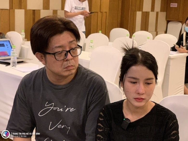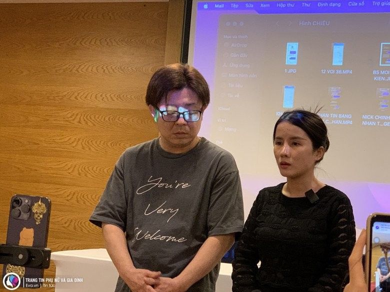Bà Nhân Vlog và ông xã tại buổi gặp gỡ báo chí để đính chính về những ồn ào xung quanh việc thụ tinh ống nghiệm tìm con
