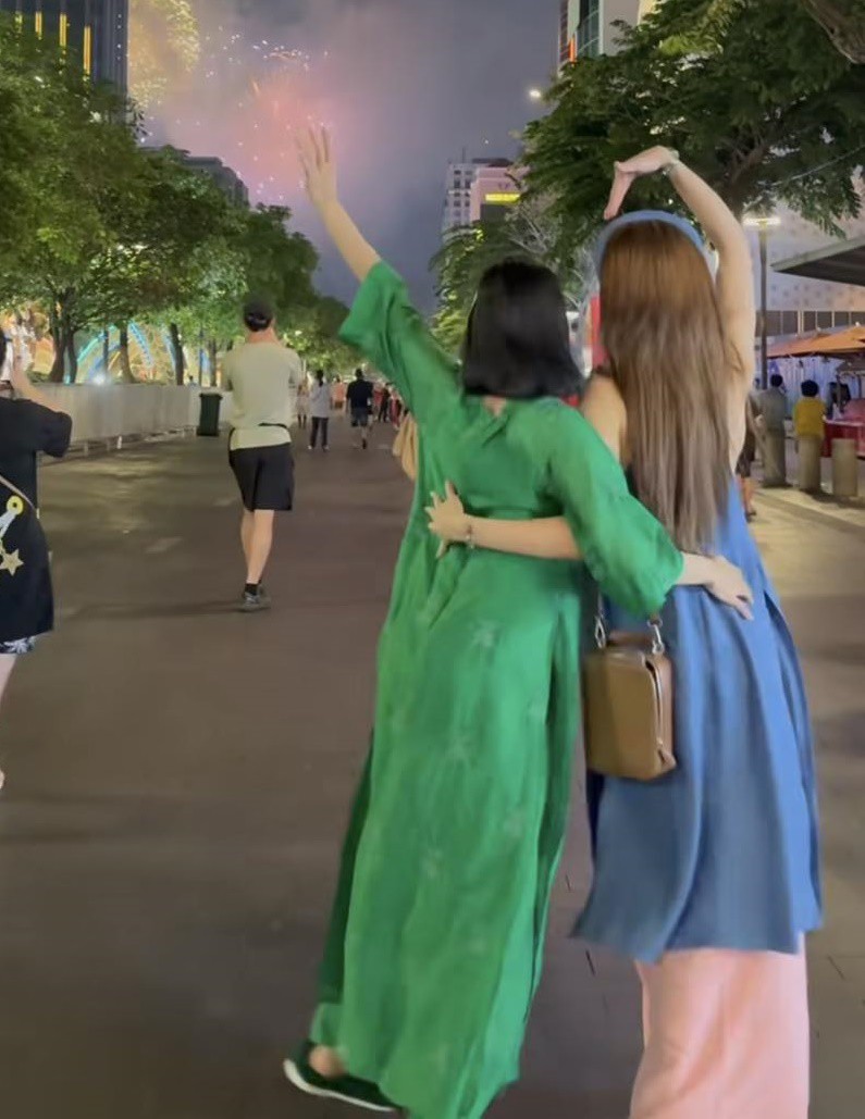 Lệ Quyên chia sẻ khoảnh khắc đón giao thừa ngày cùng cô em gái MLee. 2 chị em sau đó tạo thành hình trái tim trước màn bắn pháo hoa tại phố đi bộ Nguyễn Huệ. Trong story, Lệ Quyên chia sẻ rằng: “Năm 2023 mang đến cho bác thêm cô em út Mlee. Bác lên chức rồi, ở nhà bác là út ít đấy, chúc năm mới bình an muôn nhà”.