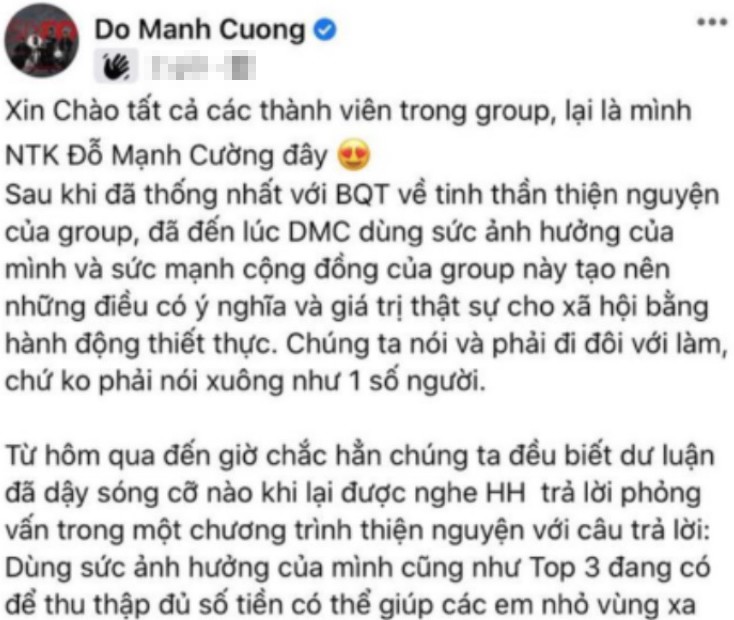 Đặc biệt, bài viết kêu gọi từ thiện của NTK Đỗ Mạnh Cường đăng tải cách đây không lâu cũng đã được xóa bỏ. Hành động của anh khiến nhiều người ngạc nhiên.