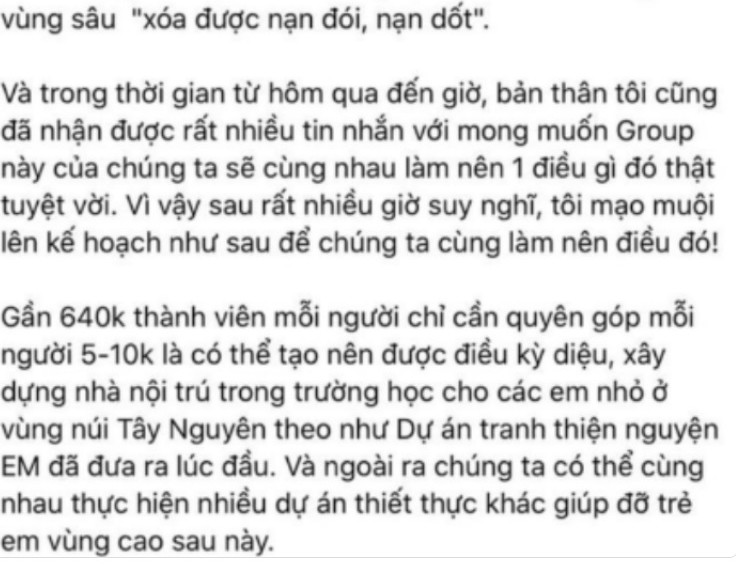 Đến chiều ngày 14/8, NTK Đỗ Mạnh Cường đã lên tiếng chính thức về việc kêu gọi từ thiện ở group này. Anh cho biết: “Mình đã làm việc với ngân hàng về việc đóng tài khoản và sao kê hôm nay. Việc sao kê ngày 13/8 đã xong, nhưng còn liên quan đến một số chuyển khoản ngày 14/8 nên phải kết thúc ngày hôm nay ngân hàng mới có thể cung cấp sao kê ngày 14/8 được. Mình cũng đang tiến hành scan sao kê để cập nhật đầy đủ trong ngày mai nên mọi người không phải lo lắng. Đỗ Mạnh Cường vẫn luôn ở đây nha. Ai trốn được chứ Đỗ Mạnh Cường thì trốn kiểu gì mà nhiều người cứ lo xa thế hả trời? Tiền kêu gọi không bằng một cái túi người mang hay một bộ đồ người ta mặc nữa mà cứ lo lừa đảo với trốn”.
