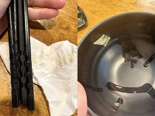 Tiếp theo mình đã gọi với nhân viên và phản ánh ngay tại quán luôn để đổi ống đũa. Nhưng ống đũa thứ 2 mang ra, sau khi lấy giấy lau đầy dầu mỡ và bẩn, bát đưa ra cho khách thì nguyên cả cọng hành.