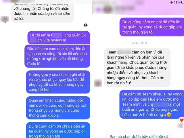 Chủ quán cũng chủ động nhắn tin xin lỗi với team của nữ TikToker đã phản ánh chất lượng đồ ăn và phục vụ