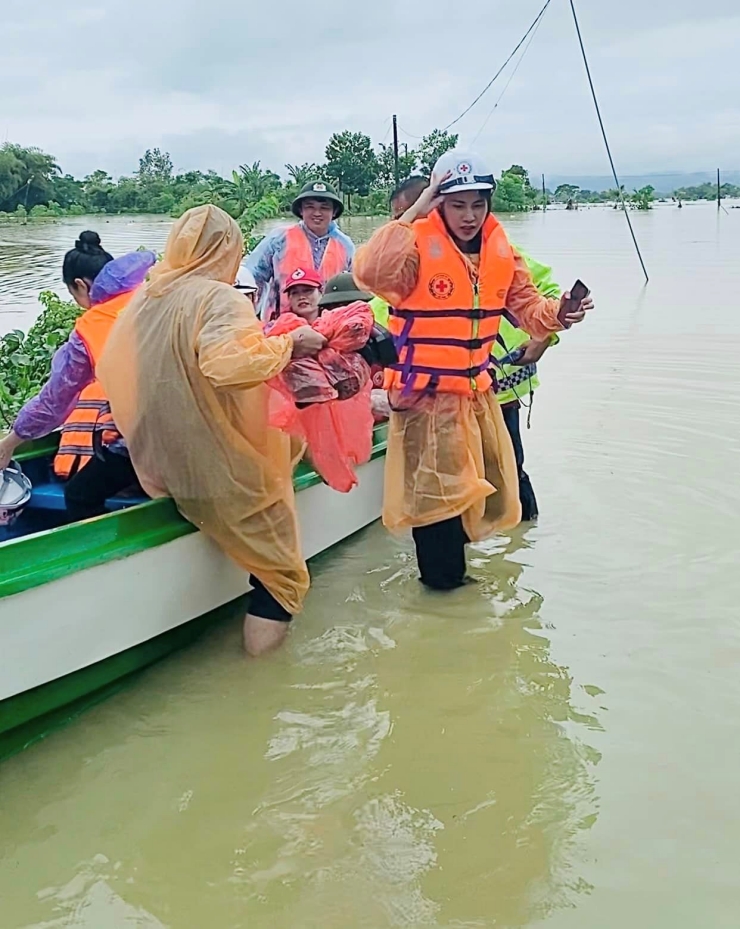 “Sáng nay 4h30 đã thức sớm để chuẩn bị. Hiện Tiên cùng đoàn Chủ tịch Hội chữ Thập Đỏ Việt Nam và lãnh đạo địa phương về trao quà và tiền cho bà con Nghệ An. Lãnh đạo địa phương chia sẻ rằng năm trước tụi mình có hỗ trợ 20 thuyền cứu hộ nên năm nay công tác chuẩn bị di dời dân khi có bão lũ nhanh chóng và kịp thời, nên cũng đã hạn chế thiệt hại tối đa cho bà con. Cảm ơn mọi người đã chung tay góp sức hỗ trợ cũng như gửi lời cảm ơn đến lãnh đạo địa phương đã hết lòng trong công tác phòng chống thiên tai giúp bà con hạn chế tối đa thiệt hại ạ”, Thủy Tiên chia sẻ trên trang Facebook cá nhân.