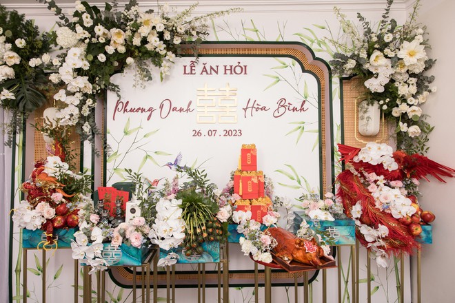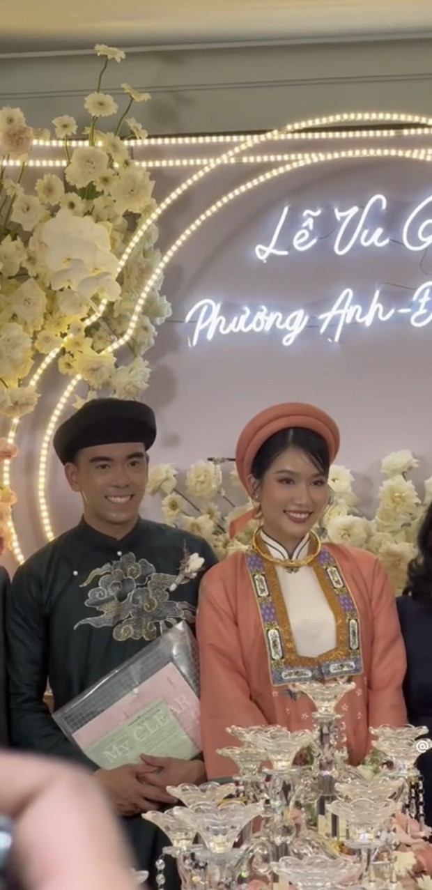 Trải qua hơn 1 năm yêu đương kín tiếng, Á hậu Phương Anh và bạn trai doanh nhân đã tổ chức lễ ăn hỏi vào sáng ngày 8/7 trước thềm đám cưới vào tháng 9/2023. Đặc biệt nàng Á hậu dậy sớm để tự trang trí hoa trong không gian lễ vu quy. Trong các lễ gia tiên, cư dân mạng tò mò số sính lễ mà cặp đôi nhận được. Qua những hình ảnh từ Phương Anh chia sẻ, có thể thấy cả hai được nhiều quà tặng đặc biệt. Ngoài chiếc kiềng vàng cô dâu đeo trên người, cả hai đã nhận được sổ đỏ, sổ tiết kiệm trong ngày lễ vu quy.