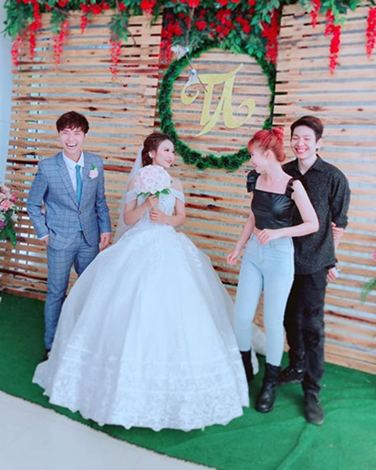 Dự đám cưới bạn bè thân, thay vì ăn diện nổi bật, đôi vợ chồng trẻ Khởi My – Kelvin Khánh chọn trang phục giản dị.