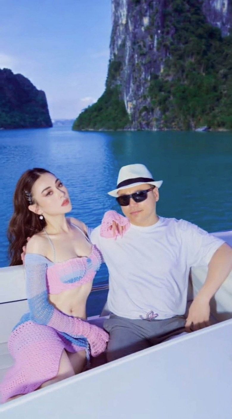 Shark Bình – Phương Oanh chụp ảnh trên mạn tàu.