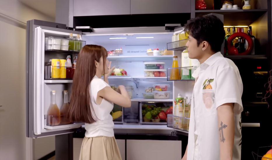 Thiết kế nhà bếp không gian mở hiện đại, đầy đủ tiện nghi và công năng như tủ lạnh lớn, lò nướng,… Gin Tuấn Kiệt bật mí Puka là người rất siêng năng nấu ăn và làm rất ngon. Những ngày nghỉ, đôi vợ chồng son thường cùng nhau đi siêu thị, sau đó Puka phụ trách nấu ăn, Gin Tuấn Kiệt dọn dẹp.