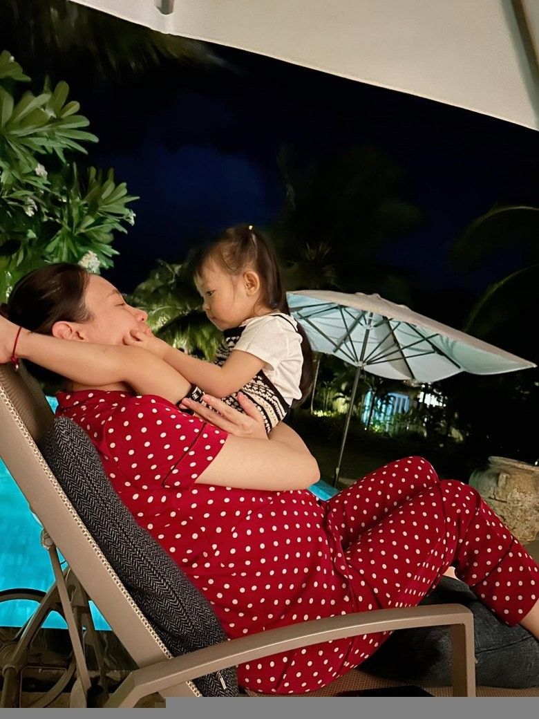 Mới đây trên trang cá nhân, Đàm Thu Trang vừa đăng tải loạt ảnh nghỉ lễ bên cạnh con gái khi chồng vắng nhà kèm dòng trạng thái: “Nghỉ lễ của mẹ và cục nhõi siêu quậy”. Trong ảnh, cô bé Suchin có những biểu cảm “cưng xỉu” khi thể hiện tình yêu thương với mẹ. Nhìn cách cô bé âu yếm mẹ, ai nấy đều phải “tan chảy” vì quá đáng yêu.