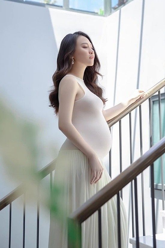Đàm Thu Trang mang bầu vẫn được khen ngợi về vẻ phúc hậu, xinh đẹp.